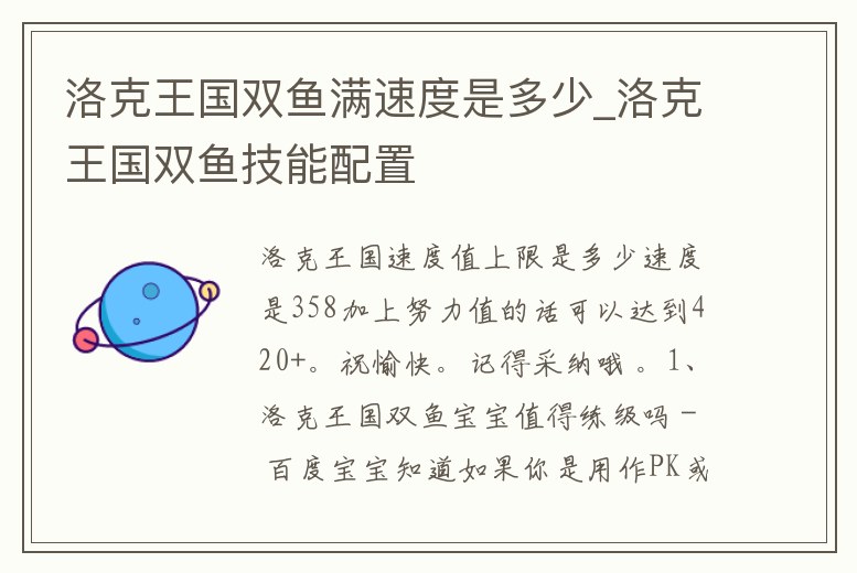 洛克王國雙魚滿速度是多少_洛克王國雙魚技能配置
