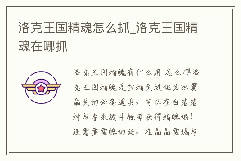 洛克王國精魂怎么抓_洛克王國精魂在哪抓