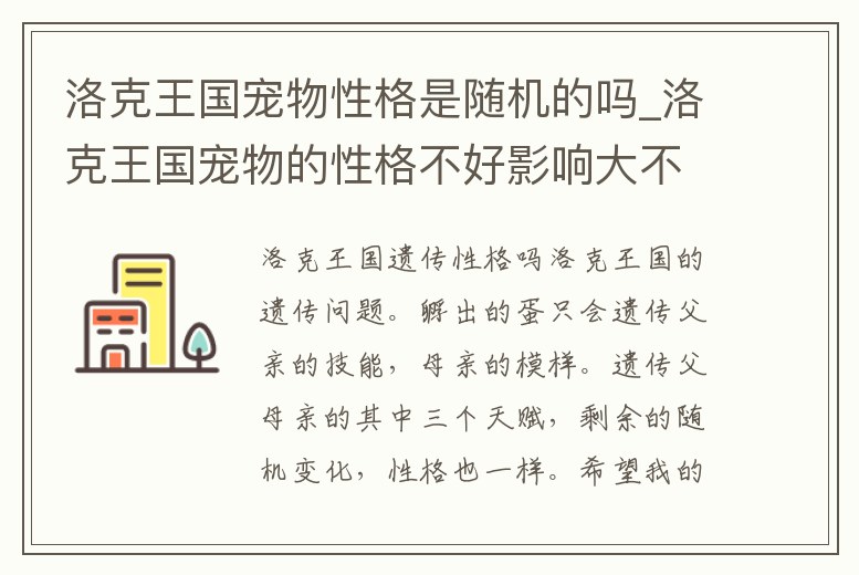 洛克王國(guó)寵物性格是隨機(jī)的嗎_洛克王國(guó)寵物的性格不好影響大不大