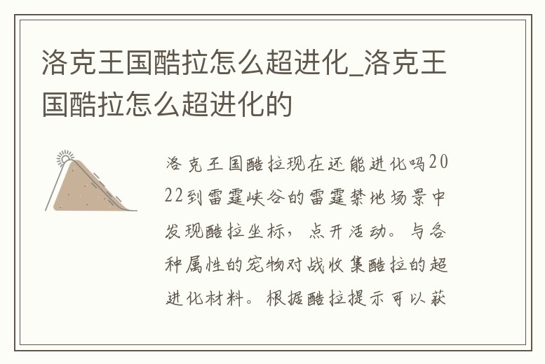 洛克王國酷拉怎么超進化_洛克王國酷拉怎么超進化的