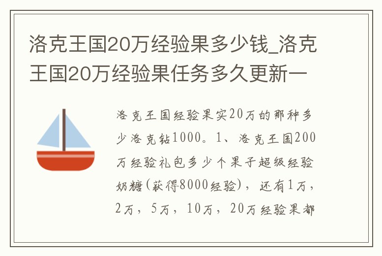 洛克王國(guó)20萬經(jīng)驗(yàn)果多少錢_洛克王國(guó)20萬經(jīng)驗(yàn)果任務(wù)多久更新一次