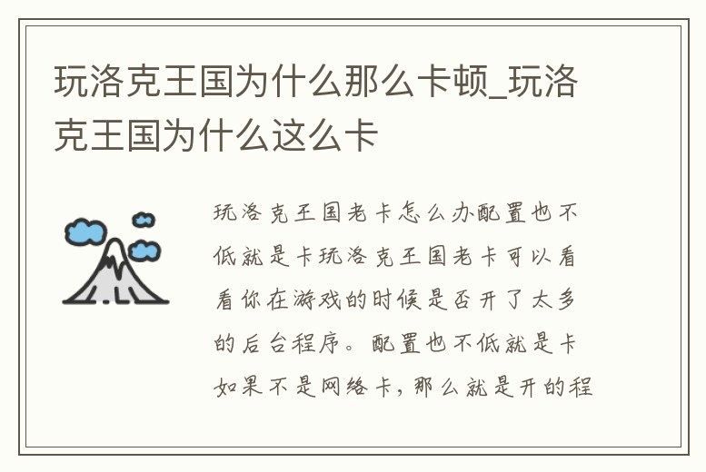 玩洛克王國老卡怎么辦配置也不低就是卡