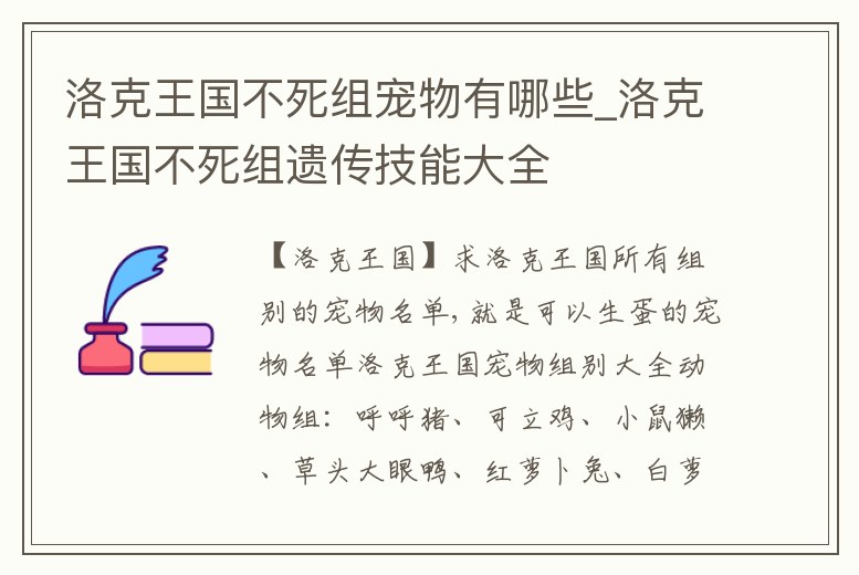 洛克王國不死組寵物有哪些_洛克王國不死組遺傳技能大全