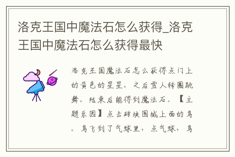 洛克王國中魔法石怎么獲得_洛克王國中魔法石怎么獲得最快
