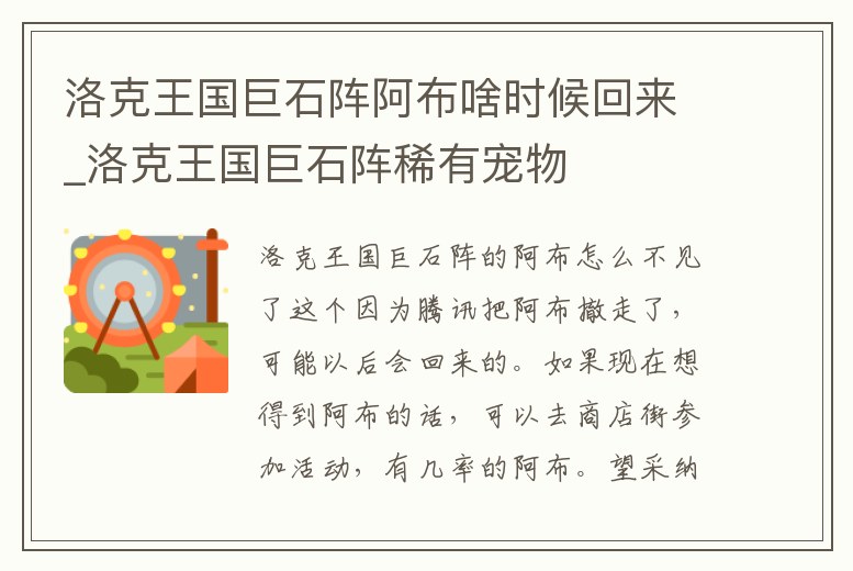 洛克王國巨石陣阿布啥時候回來_洛克王國巨石陣稀有寵物