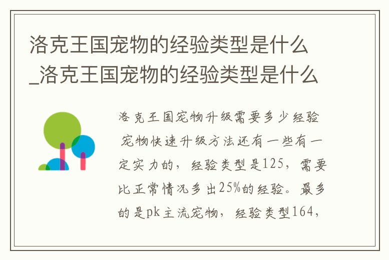 洛克王國寵物的經驗類型是什么_洛克王國寵物的經驗類型是什么