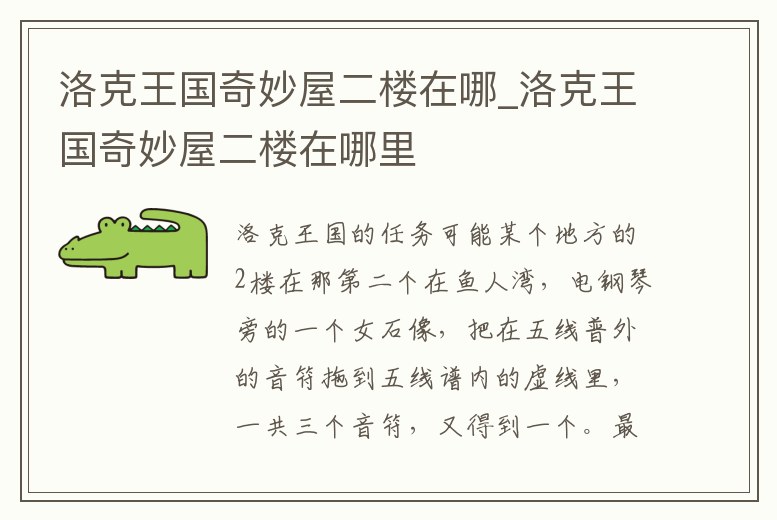 - 洛克王國奇妙屋二樓在哪_洛克王國奇妙屋二樓在哪里
