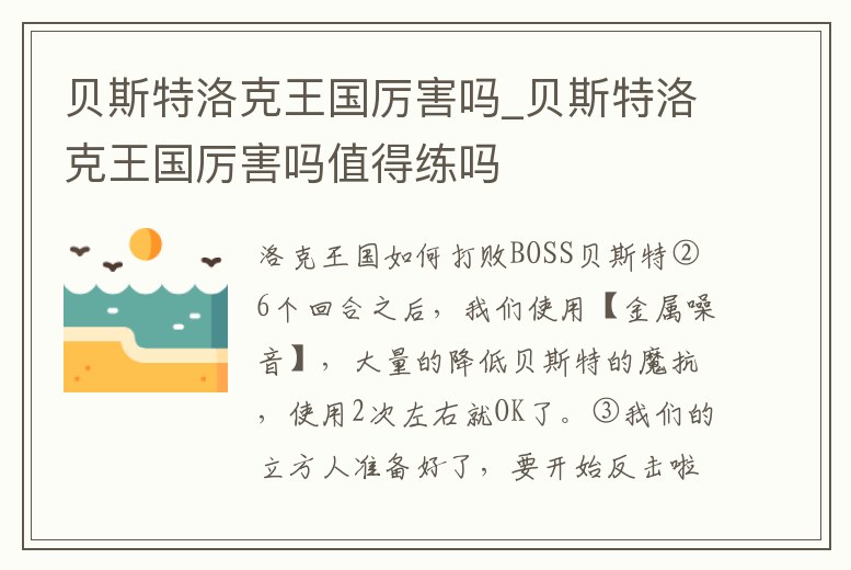 - 貝斯特洛克王國(guó)厲害嗎_貝斯特洛克王國(guó)厲害嗎值得練嗎