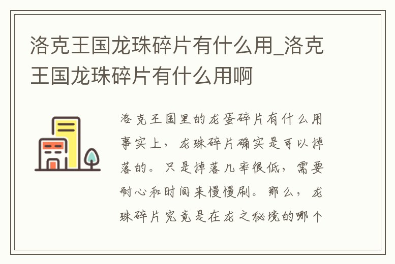 洛克王國龍珠碎片有什么用_洛克王國龍珠碎片有什么用啊