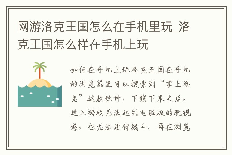 進入搜索4399洛克王國,點進去應該就可以了。注:非智能手機不能玩,因為配置不行;iphone好像是不能玩的,因為不廉容FLASH。由于流量耗費比較大,建議在WIFI下使用。我自己也沒試過,不過理論上是可以玩的,就是屏幕很小。