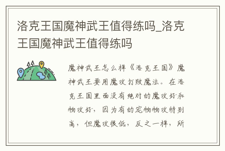洛克王國魔神武王值得練嗎_洛克王國魔神武王值得練嗎