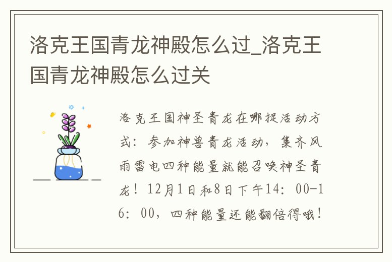 - 洛克王國(guó)青龍神殿怎么過(guò)_洛克王國(guó)青龍神殿怎么過(guò)關(guān)
