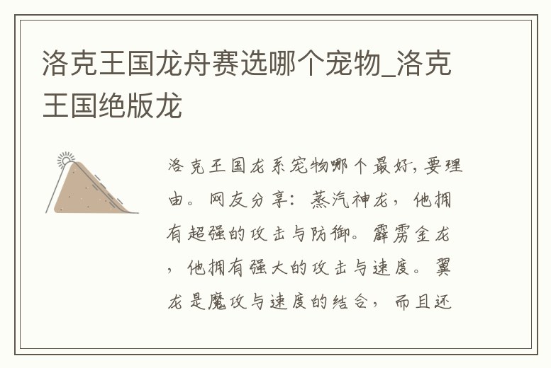 洛克王國龍舟賽選哪個寵物_洛克王國絕版龍