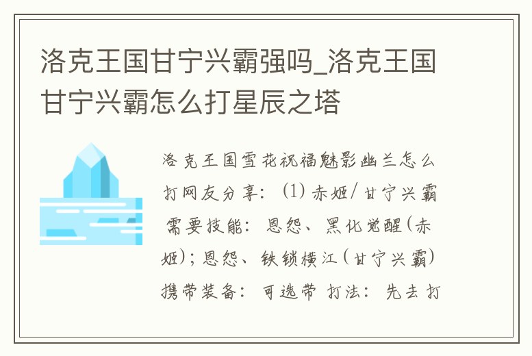 洛克王國甘寧興霸強嗎_洛克王國甘寧興霸怎么打星辰之塔