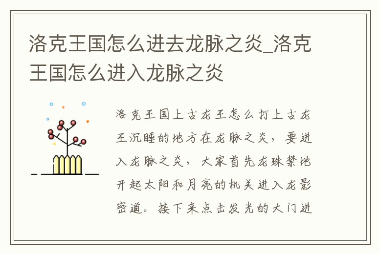 洛克王國怎么進去龍脈之炎_洛克王國怎么進入龍脈之炎