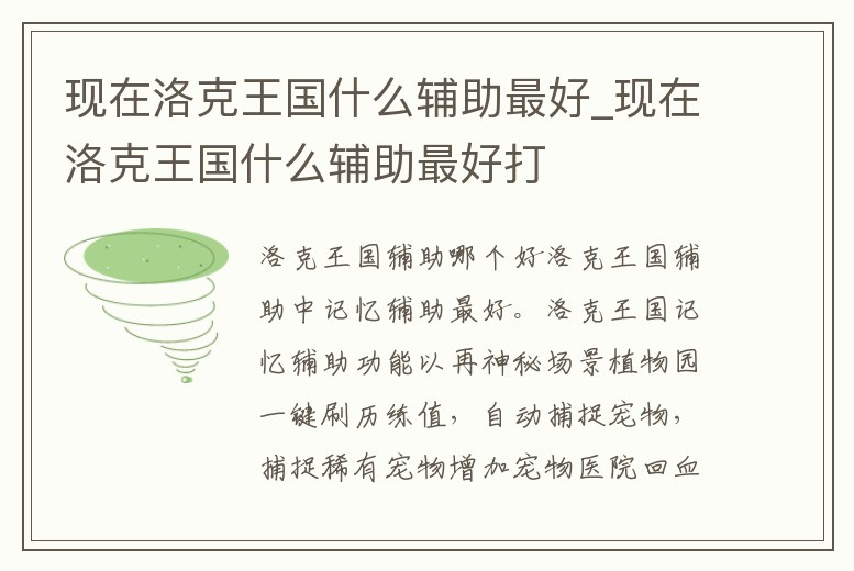 洛克王國輔助中記憶輔助最好。洛克王國記憶輔助功能以再神秘場景植物園一鍵刷歷練值,自動捕捉寵物,捕捉稀有寵物增加寵物醫院回血回藍方式。也會根據輔助功能類目的不同,分為寵物專區、任務專區、一鍵專區,以及娛樂專區和實用。
