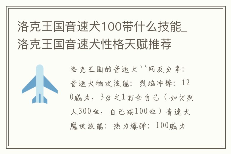 洛克王國(guó)音速犬100帶什么技能_洛克王國(guó)音速犬性格天賦推薦