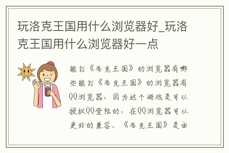 能打《洛克王國》的瀏覽器有QQ瀏覽器,因為這個游戲是可以授權QQ登陸的,在QQ瀏覽器可以更好的兼容。《洛克王國》是由騰訊游戲魔方工作室群發行并運營的網頁游戲,于2010年7月15日正式公測。在王國里,玩家們化身為一個個。