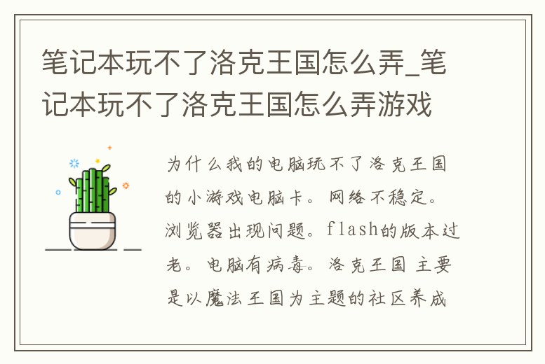 筆記本玩不了洛克王國怎么弄_筆記本玩不了洛克王國怎么弄游戲