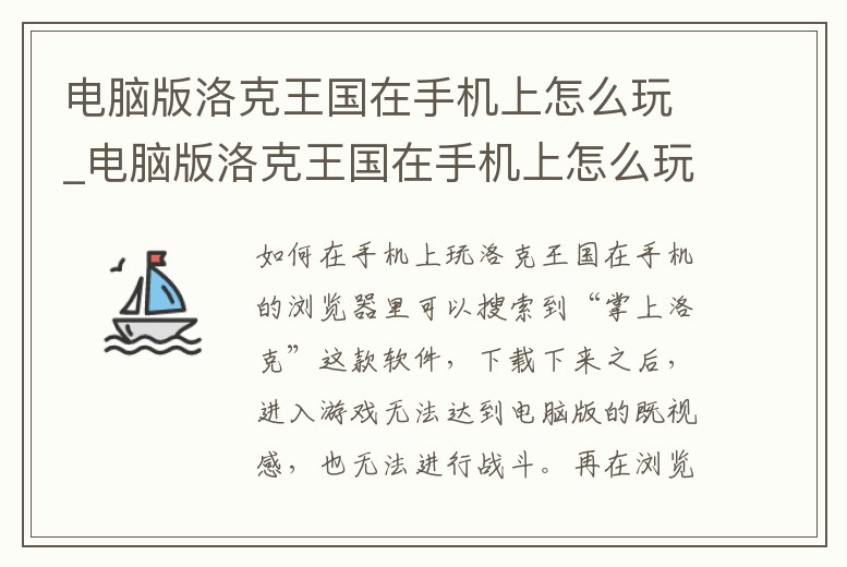 步驟 下載最新版本的FLASH,安裝到手機(jī)上,下載網(wǎng)速好一點(diǎn)的手機(jī)瀏覽器。注:非智能手機(jī)不能玩,因?yàn)榕渲貌恍校籭phone不能玩,因?yàn)椴涣軫LASH。【洛克王國是網(wǎng)頁游戲,必須用到Flash,就像看視屏需要播放器是一樣的。】我。