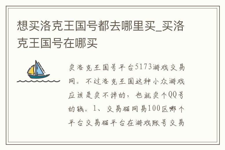 5173游戲交易網(wǎng)。不過洛克王國這種小眾游戲應(yīng)該是賣不掉的,也就賣個QQ號的錢。