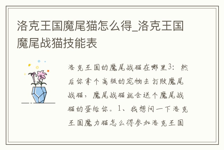 洛克王國魔尾貓怎么得_洛克王國魔尾戰貓技能表