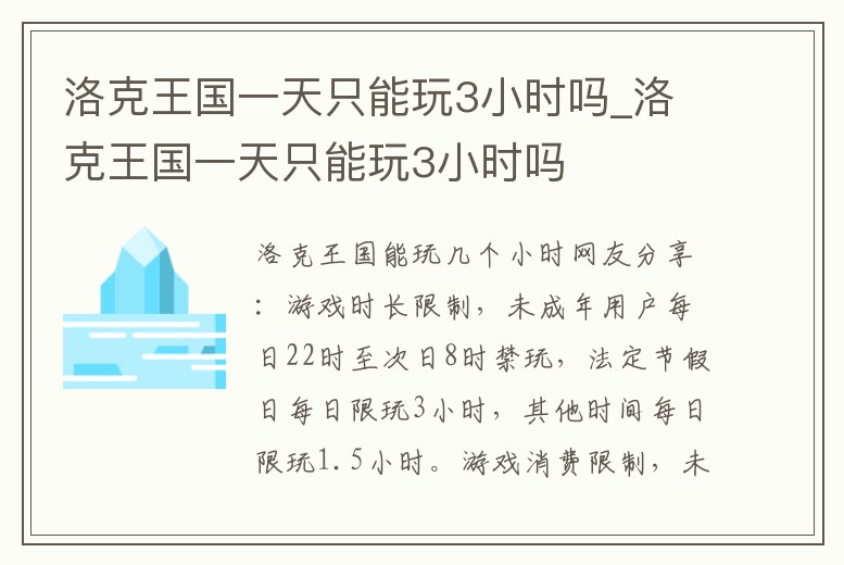 洛克王國能玩幾個小時網友分享:游戲時長限制,未成年用戶每日22時至次日8時禁玩,法定節假日每日限玩3小時,其他時間每日限玩1.5小時。游戲消費限制,未滿8周歲的用戶無法進行游戲充值;8周歲(含)以上未滿16周歲的用戶,單次充值上限50元人民。1、洛克王國每天只能在線3小時嗎您好洛克王國的防沉迷是這樣的,5