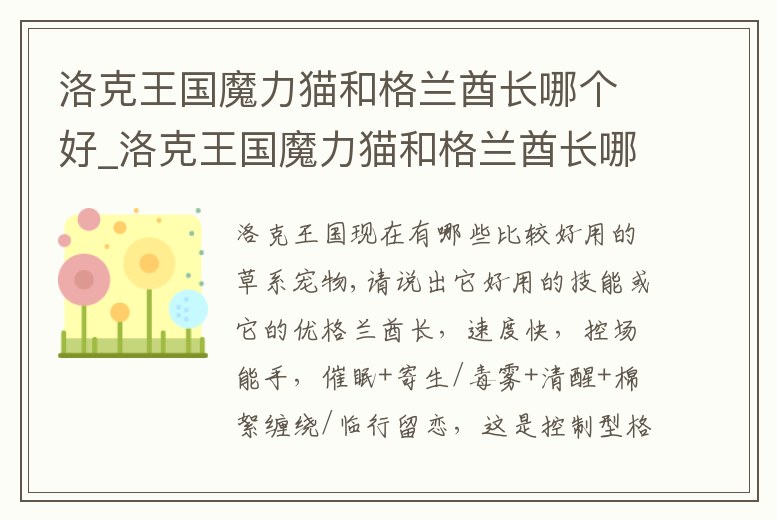 洛克王國魔力貓和格蘭酋長哪個好_洛克王國魔力貓和格蘭酋長哪個好打