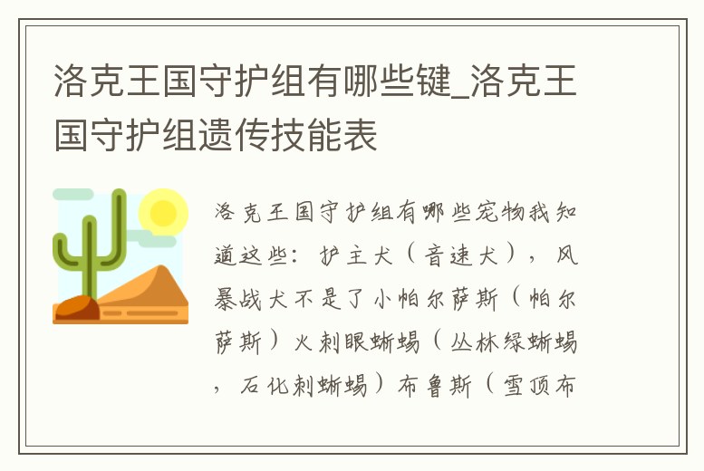 洛克王國守護組有哪些鍵_洛克王國守護組遺傳技能表