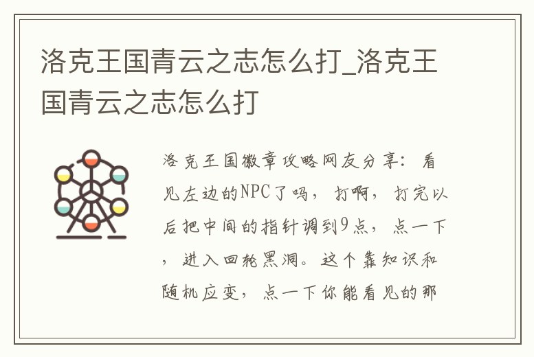 洛克王國青云之志怎么打_洛克王國青云之志怎么打