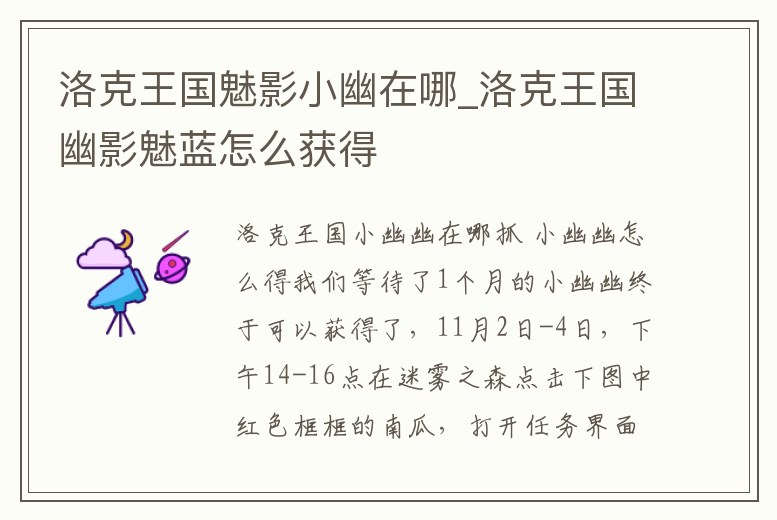 洛克王國魅影小幽在哪_洛克王國幽影魅藍怎么獲得