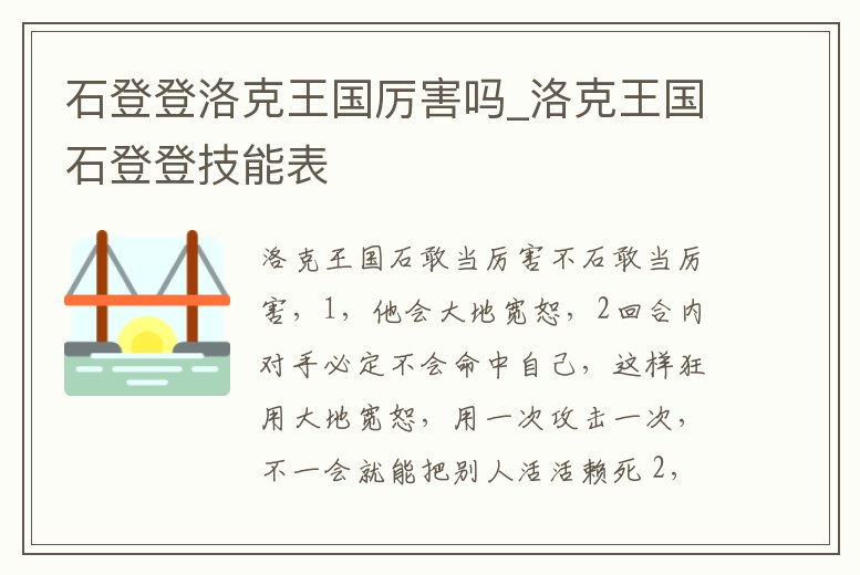 石登登洛克王國厲害嗎_洛克王國石登登技能表