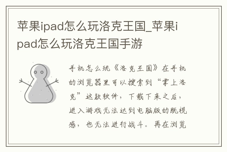 ipad可以玩的,因為他屏幕大,我就用ipad玩過。你打開瀏覽器,在百度上搜洛克王國,然后再點那個,就可以玩了,只不過有點卡 。