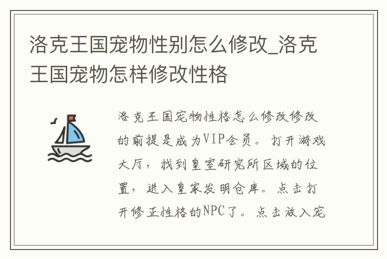 洛克王國寵物性別怎么修改_洛克王國寵物怎樣修改性格