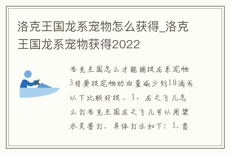 洛克王國龍系寵物怎么獲得_洛克王國龍系寵物獲得2022