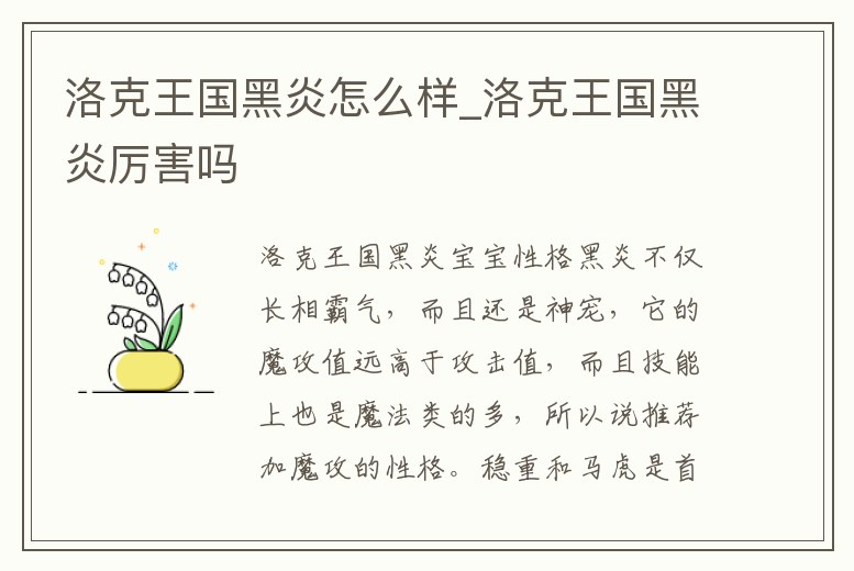 洛克王國黑炎怎么樣_洛克王國黑炎厲害嗎