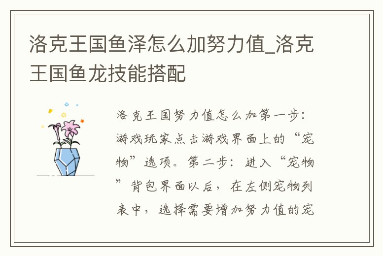 洛克王國魚澤怎么加努力值_洛克王國魚龍技能搭配