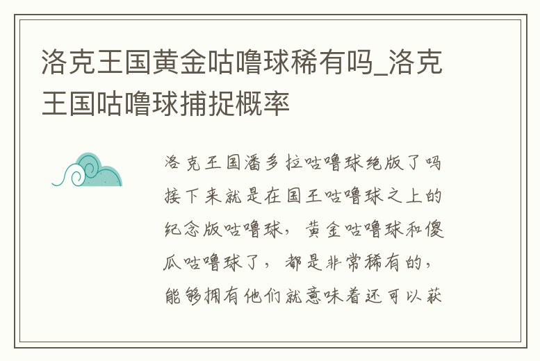 洛克王國黃金咕嚕球稀有嗎_洛克王國咕嚕球捕捉概率