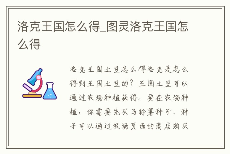 洛克是怎么得到王國土豆的?王國土豆可以通過農(nóng)場種植獲得。要在農(nóng)場種植,你需要先買馬鈴薯種子。種子可以通過農(nóng)場頁面的商店購買,馬鈴薯種子在商店的第三頁。購買了需要的種子后,可以直接放在口袋里種植。播種成功后,等待成熟。