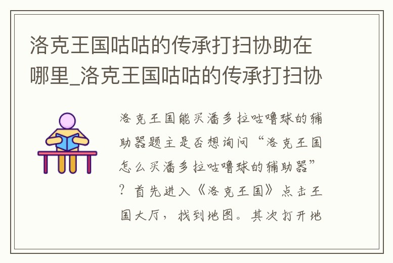 洛克王國咕咕的傳承打掃協(xié)助在哪里_洛克王國咕咕的傳承打掃協(xié)助在哪里辦