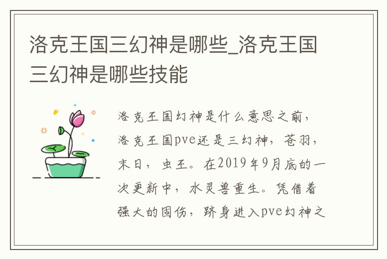 - 洛克王國(guó)三幻神是哪些_洛克王國(guó)三幻神是哪些技能