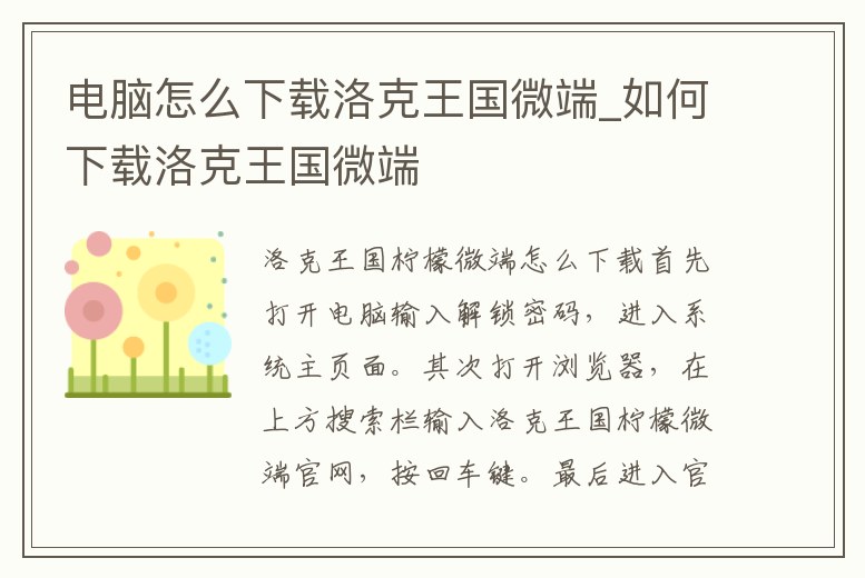 首先打開電腦輸入解鎖密碼,進入系統主頁面。其次打開瀏覽器,在上方搜索欄輸入洛克王國檸檬微端官網,按回車鍵。最后進入官網,點擊下載并選擇保存位置即可。