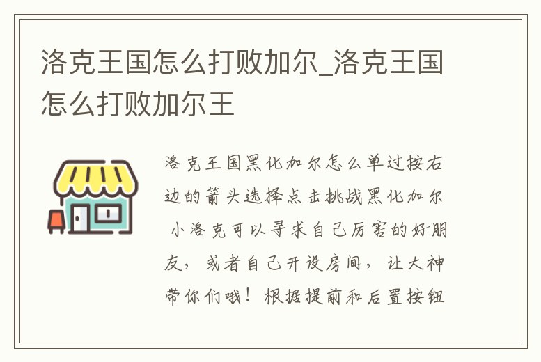 洛克王國怎么打敗加爾_洛克王國怎么打敗加爾王
