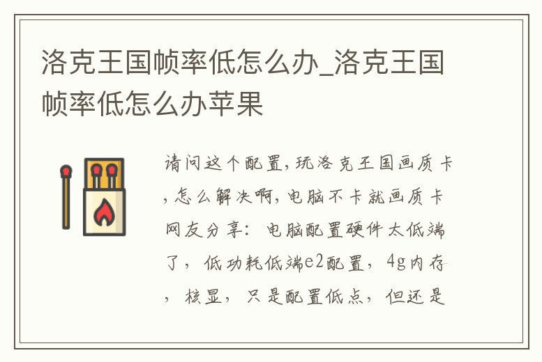 請問這個配置,玩洛克王國畫質卡,怎么解決啊,電腦不卡就畫質卡