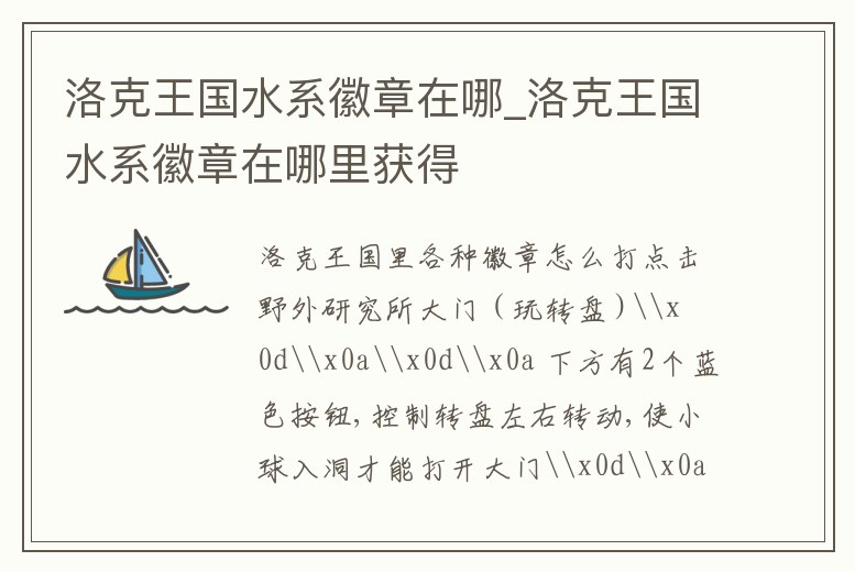 - 洛克王國(guó)水系徽章在哪_洛克王國(guó)水系徽章在哪里獲得