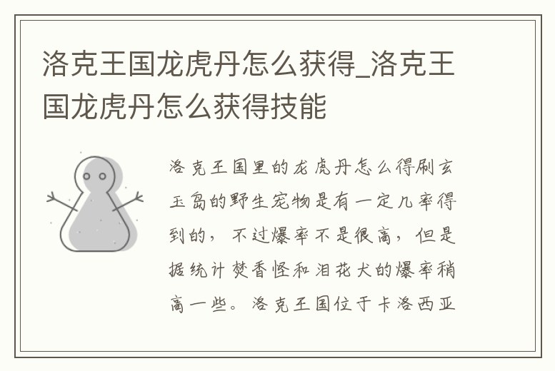 洛克王國龍虎丹怎么獲得_洛克王國龍虎丹怎么獲得技能