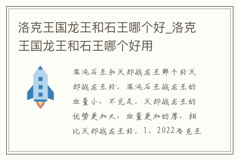 洛克王國龍王和石王哪個好_洛克王國龍王和石王哪個好用