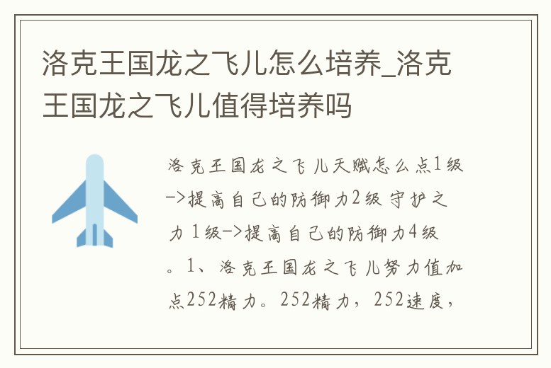 洛克王國龍之飛兒怎么培養_洛克王國龍之飛兒值得培養嗎
