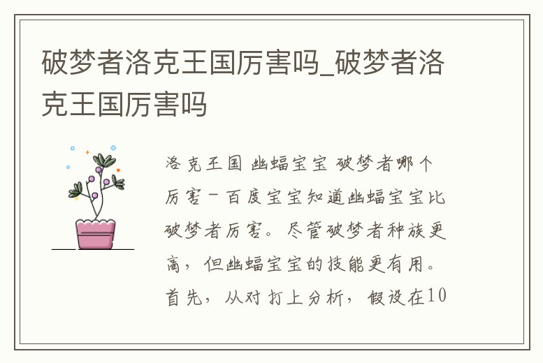 洛克王國 幽蝠寶寶 破夢者哪個厲害 - 百度寶寶知道