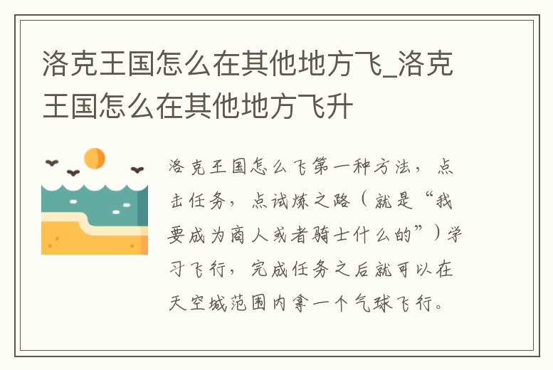 洛克王國怎么在其他地方飛_洛克王國怎么在其他地方飛升